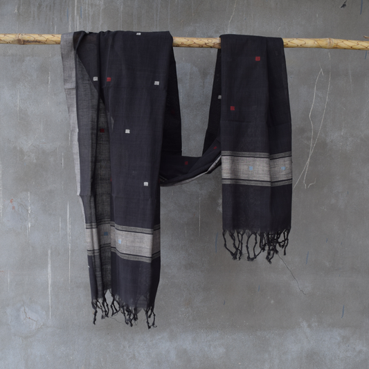 Black natural dye cotton handwoven srikakulam jamdani dupatta
