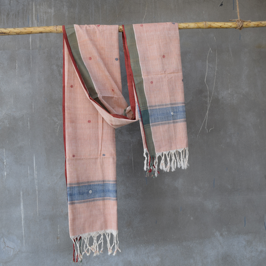 Pink natural dye cotton handwoven srikakulam jamdani dupatta