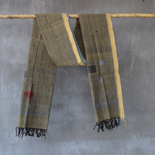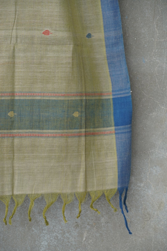 Green natural dye cotton handwoven srikakulam jamdani dupatta