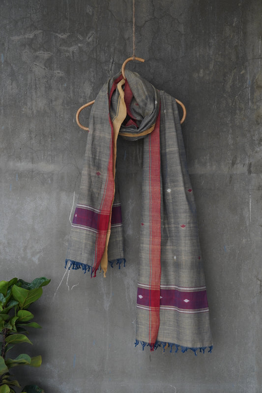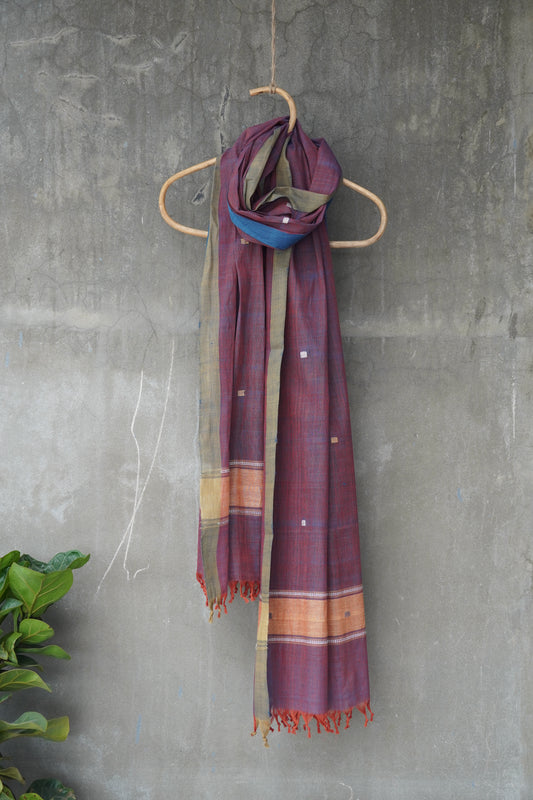 Purple natural dye cotton handwoven srikakulam jamdani dupatta